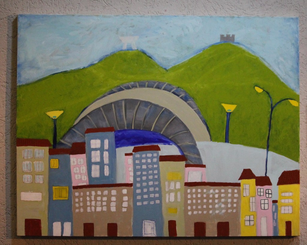 Тамара, Славица, Теодора и Радован представили су Митровицу са шареним и светло-плавим облацима. Међу облацима је споменик рударима. На небу су и змај и авион. Зграде и куће су разних величина, са различитим прозорима. На једној од кућа је птица. Асфалт није црн, већ пинк боје. На коловозу су два џипа.