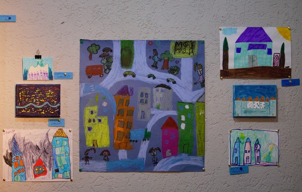 Своју машту пренели су на сликарска платна. Током радионице у Приватном културном центру „Акваријус“, 25 малишана, од 4 до 14 година, сликали су и цртали свој град. На јучерашњој изложби и јавности су представили своје виђење Косовске Митровице.