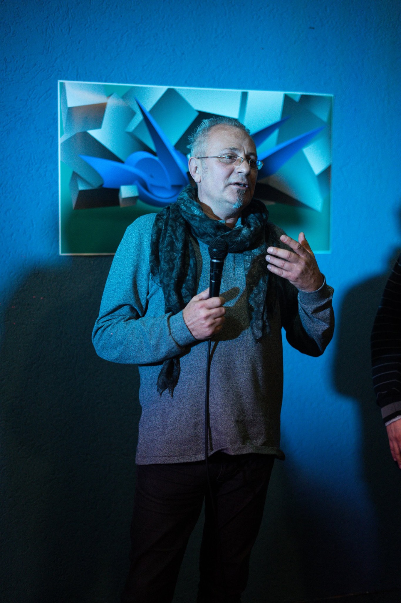 „Част ми је и задовољство да отворим изложбу три млада уметника различитог стила и интересовања. Оно што њих овде везује и оно што ми можемо да видимо је дигитална техника рађена компјутерским софтверима“, рекао је Арванитидис.