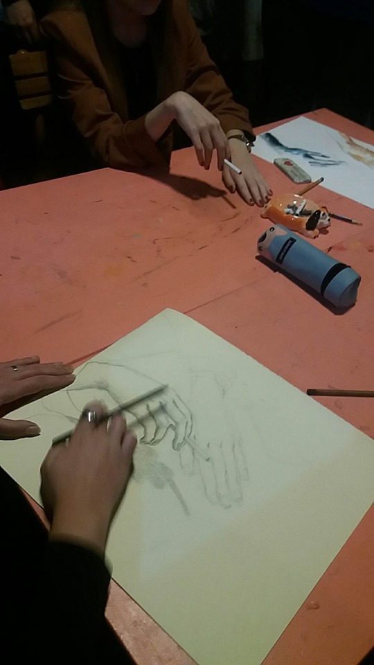 Опис задатка: студија шаке (цртеж шака по моделу одабраном из публике)
