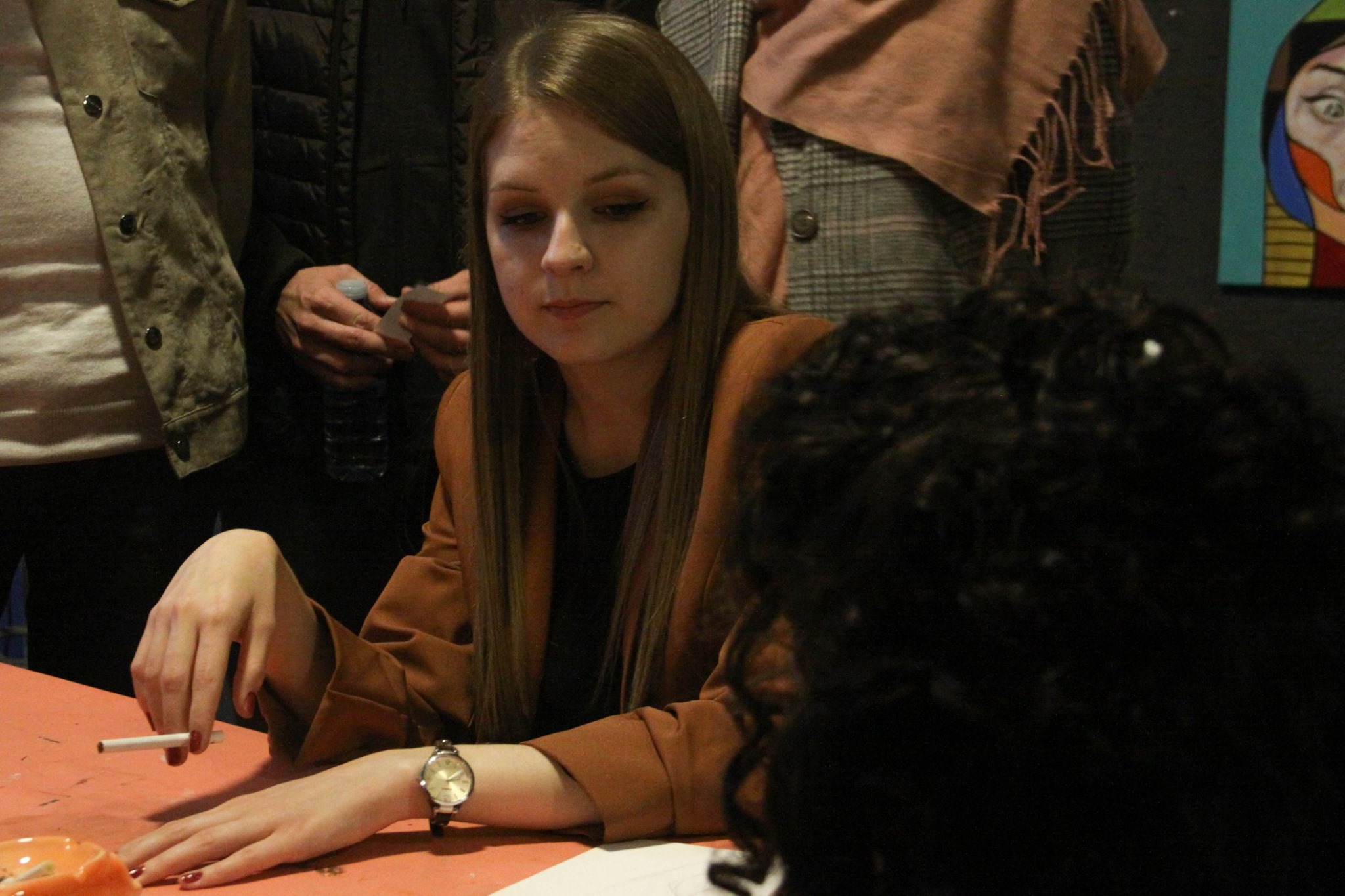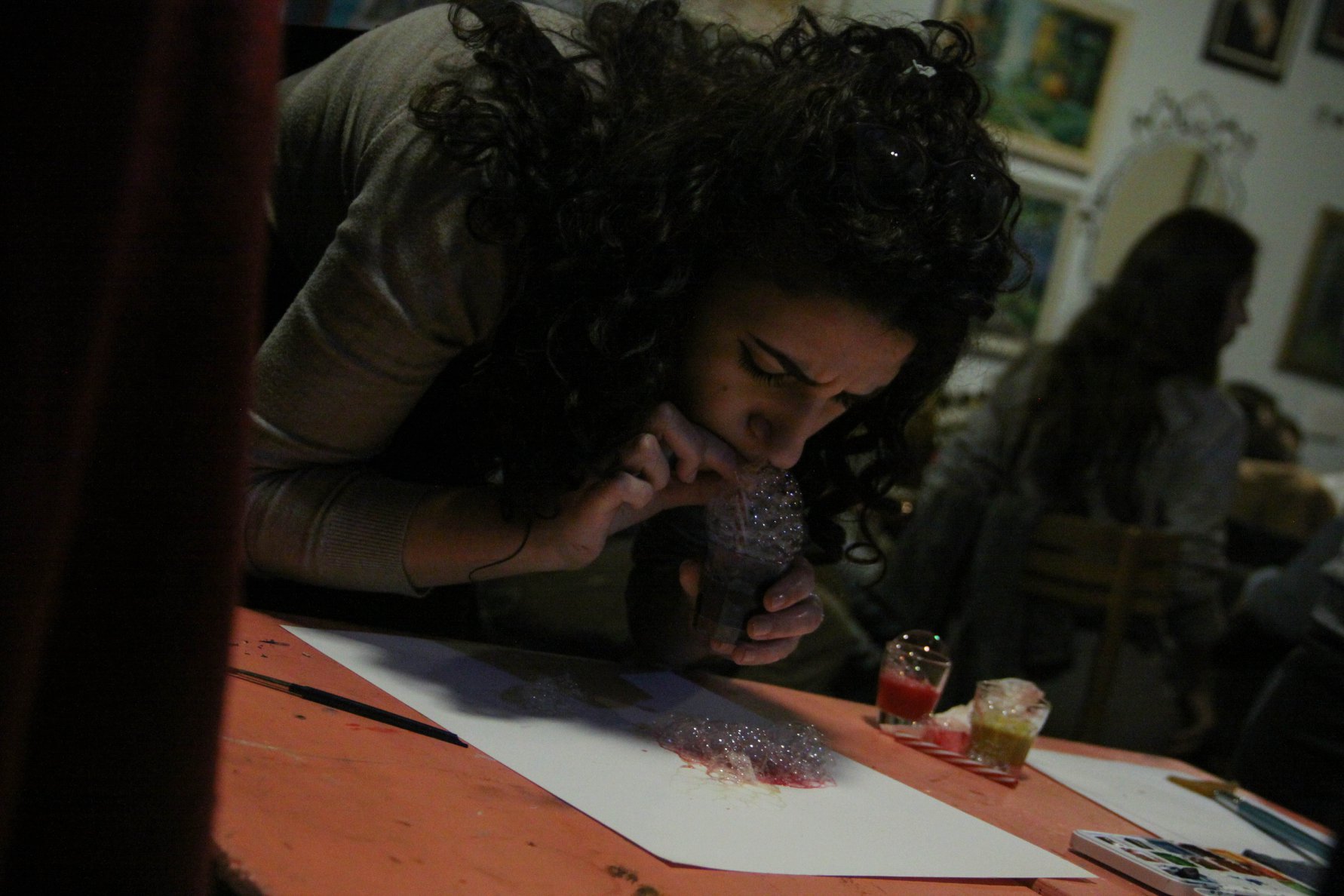 Први меч био је зназно неизвеснији и узбудљивији, а за нијансу боља била је Тијана Родић која је резултатом 112:109 савладала Анђелу Јордановић, полуфиналсткињу прошлог циклуса Ликовних окршаја у „Акваријусу“. Предност је стекла у првој рунди (38:34), и успела некако да је одржи до краја. Анђели је, по мишљењу жирија, недостајало време, тако да су јој радови (поготово онај у трећој рунди) остали недовршени. Ипак, стекао се утисак, да су и Тијана Родић и Анђела Јордановић биле прецизније, оригиналније, маштовитије, аутентичније од такмичара у прошлом колу квалификација (и победника Давида Павловића и Милице Грбовић, и поражених Александре Гроздановић и Анђеле Раденковић Поповић).