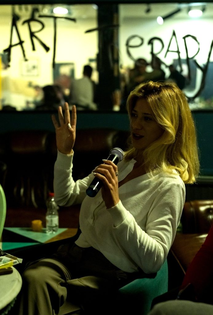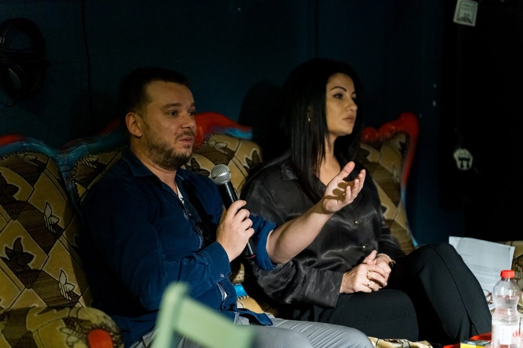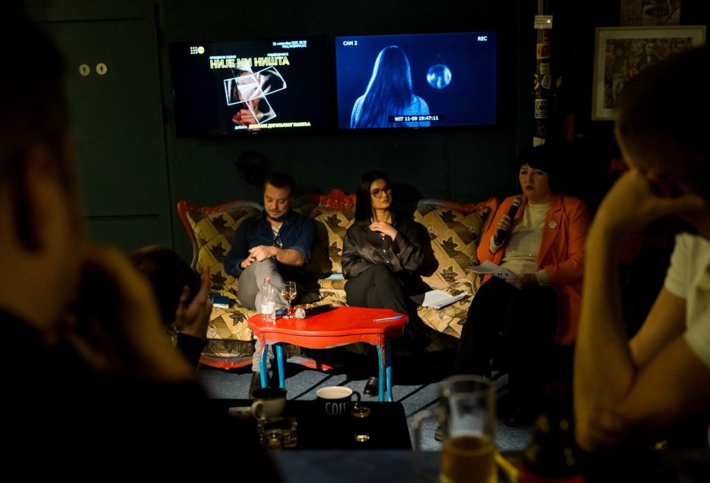 Након перформанса, уследила је трибина „Дневник дигиталног насиља“ у којој су психолог и трауматерапеут Далија Медић и новинар и активиста цивилног друштва Зоран Савић до дубоко у ноћ одговарали на питања публике и дискутовали о проблемима који су се излили из оквира задате теме.