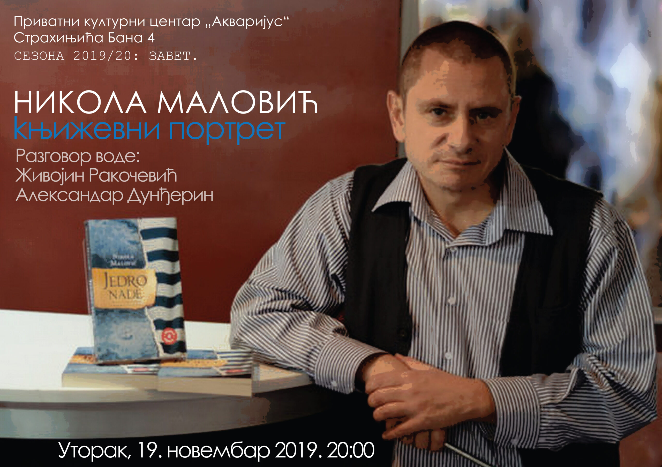 Гост Приватног културног центра „Акваријус“ у Косовској Митровици у уторак 19. новембра 2019. године од 20 часова биће књижевник Никола Маловић. Разговор са српским књижевником из Херцег-Новог (Црна Гора) водиће писци и књижевни критичари Живојин Ракочевић и Александар Дунђерин.